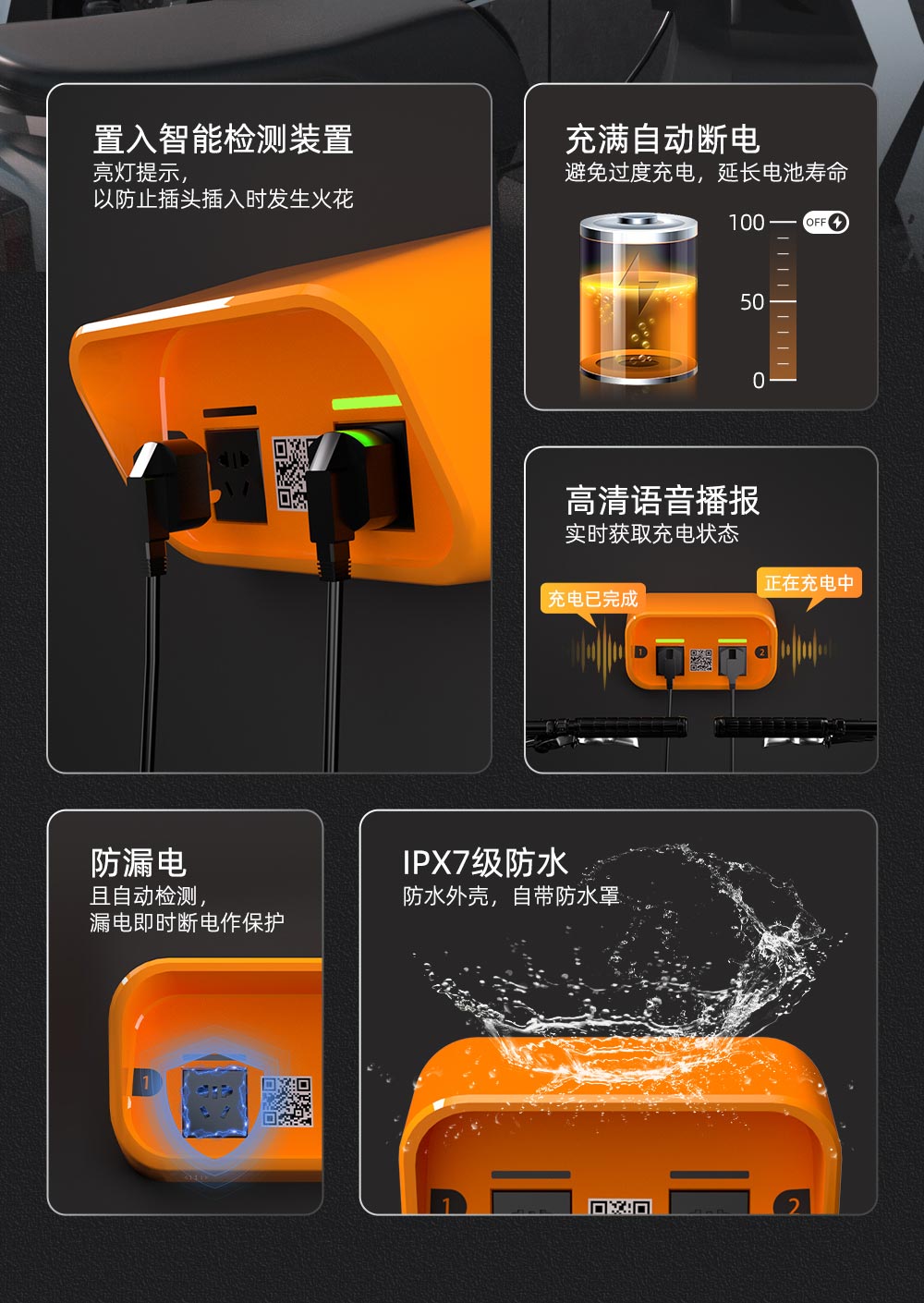 而歐米非機(jī)動車智能充電樁它既能解決傳統(tǒng)充電方式的安全隱患,又能提高充電效率,滿足居民便捷充電的需求,歐米智能充電樁具備過載保護(hù)、短路防漏電保護(hù)、智能檢測裝置等多重安全功能,能夠有效預(yù)防火災(zāi)和電擊事故。它還能根據(jù)車輛類型和電量需求自動調(diào)整充電功率,縮短充電時間,還擁有高清語音播報功能,有效提升用戶體驗。此外,智能充電樁的出現(xiàn)也符合國家政策導(dǎo)向,各級政府紛紛出臺相關(guān)文件和管理條例,規(guī)范和推動智能充電樁的建設(shè)和發(fā)展。