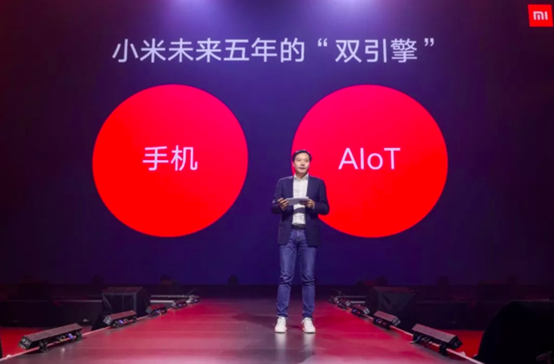 而后,隨著 5G 時(shí)代到來,小米 AIoT 戰(zhàn)略高度更上一層,公司在組織和戰(zhàn)略上全面向物聯(lián)網(wǎng)傾斜——雷軍在 2019 年年初確定了“手機(jī)+AIoT”的雙引擎戰(zhàn)略,提出 5 年 100 億 “All in AIoT”。